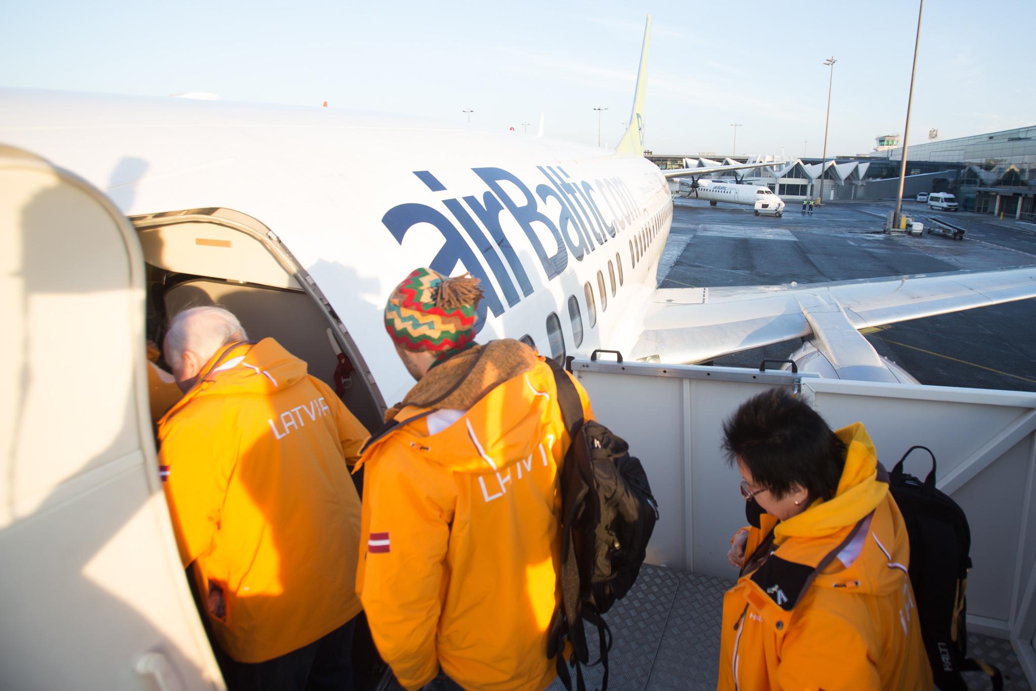 Latvian airline airBaltic operated a special flight from Riga to the Sochi Winter Olympics Feb. 6 with a truly pan-Baltic team onboard. The team departed on a specially painted Boeing 737, the Olympic livery of which airBaltic unveiled in October last year, in partnership with Latvian Olympic Committee and Riga International Airport.