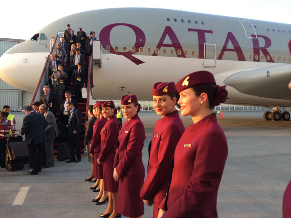 Welcome after landing in Doha. ATW Photo: By Kurt Hofmann