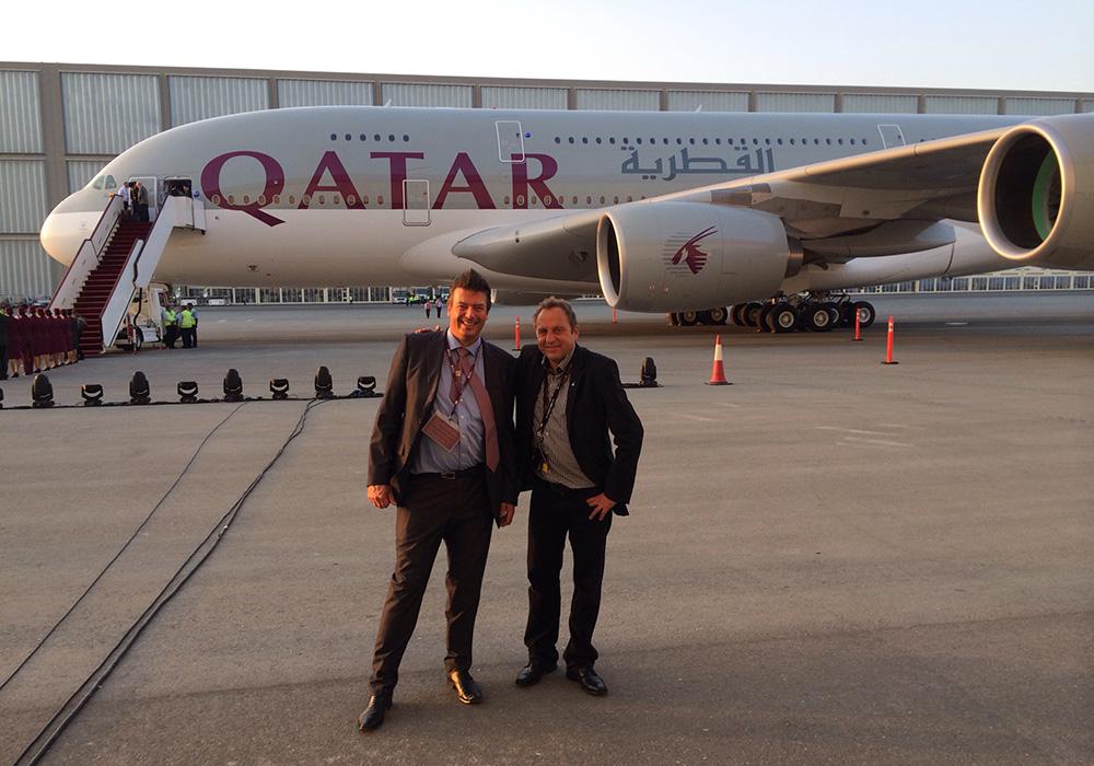 Qatar A380 welcome ceremony in Doha. ATW Photo: By Kurt Hofmann