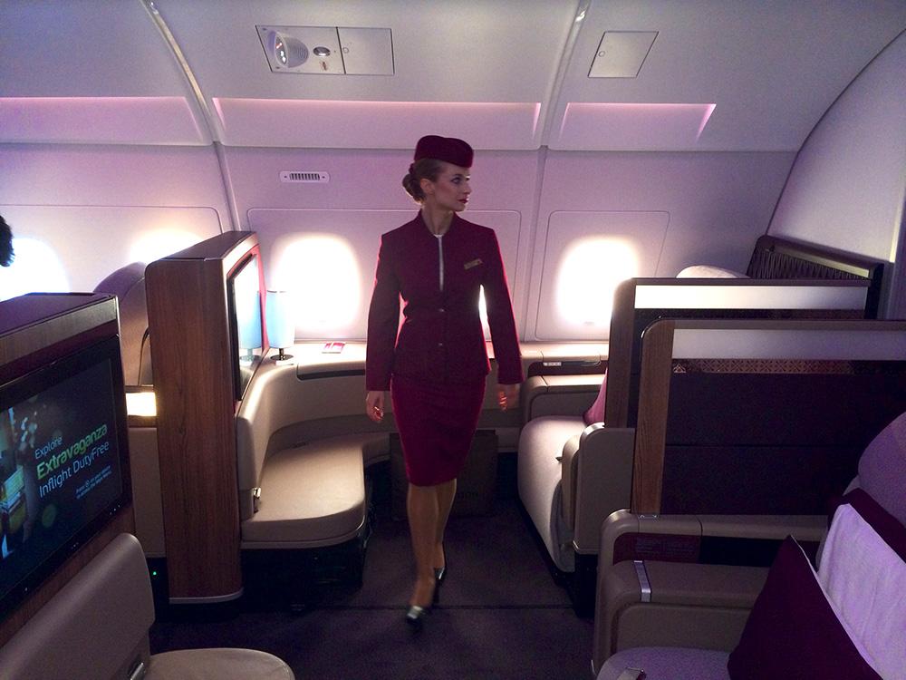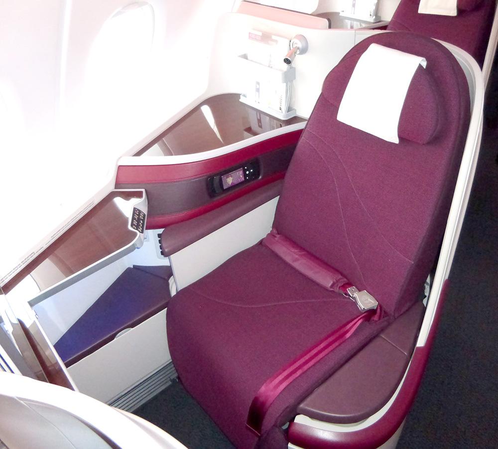 Qatar A380 business class. ATW Photo: By Kurt Hofmann