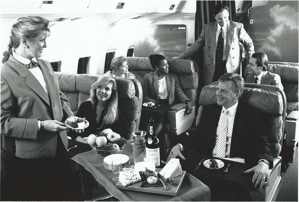 I am not sure which airline this is, but look at the table setting and the centerpiece.