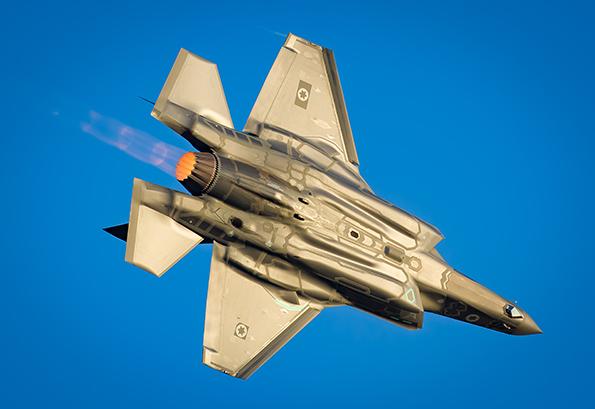 The Israeli Air Force's newly acquired F-35A Adir, which belongs to the 140 (Golden Eagle) Sqdn., turns and burns during the twilight "golden hour" of the IAF cadet graduation ceremony at Hatzerim Airbase.