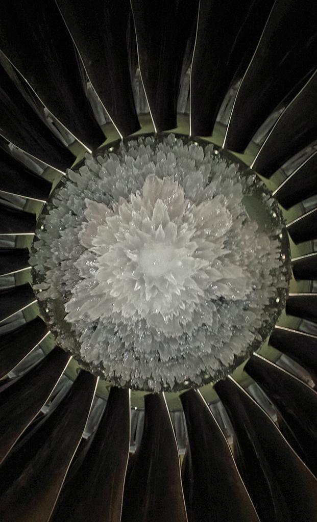 A flower of ice covers this 737 engine prior to deicing in Dallas.