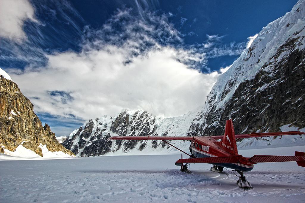 Beaver N8190Y in the West Fork of the Ruth Glacier on Mount Denali, Alaska.