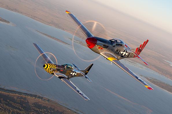 Stallion 51's two TF-51D Mustangs in close formation.