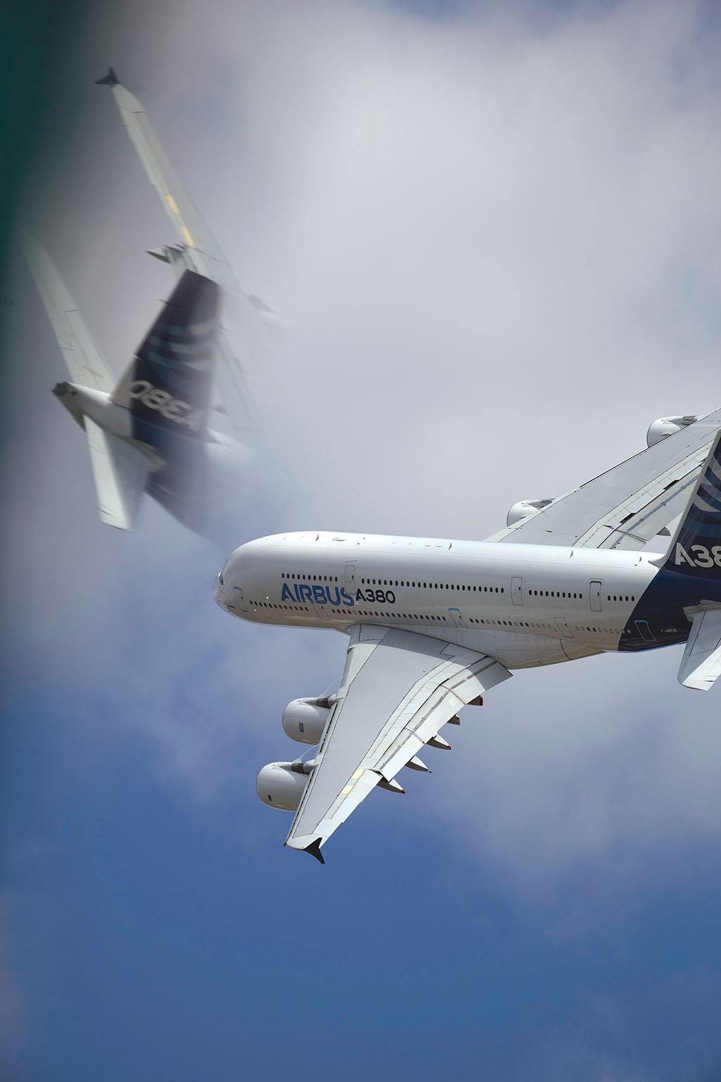 An Airbus A380 is reflected in the control tower window at the July 2014 Farnborough Airshow. Photo by Richard Deakin, Oxshott, England.