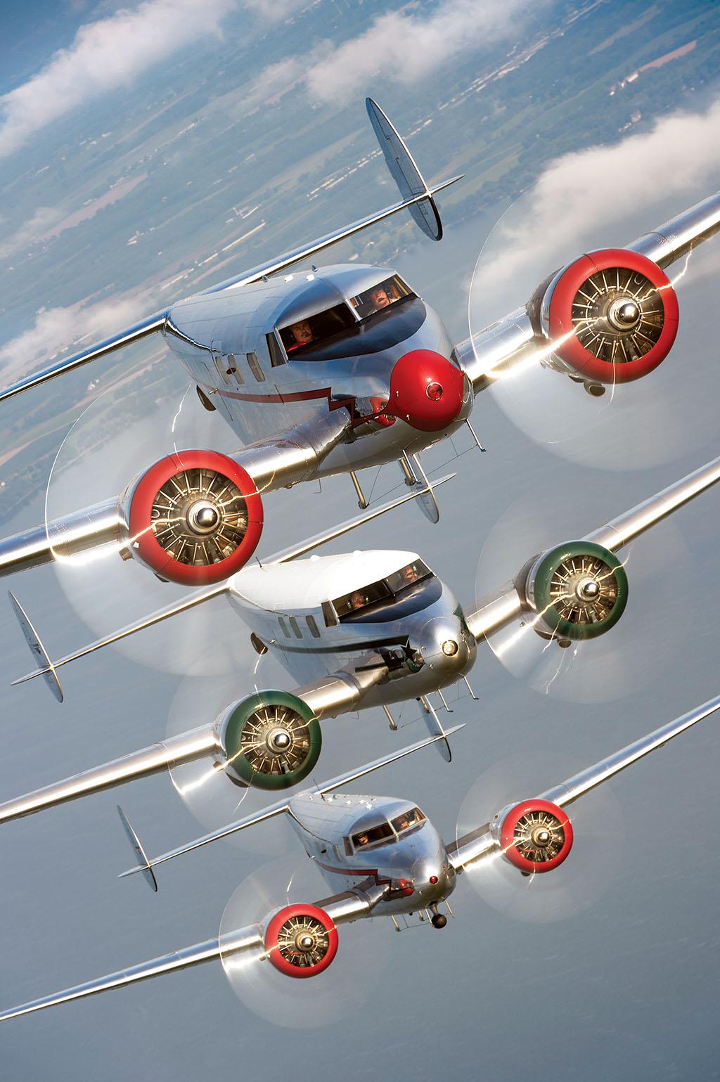 Three Lockheed Electras fly a tight formation over Lake Michigan. They were flown by David Marco, Les Whitelsey and Peter Ramm during EAA Airventure 2014. Photo by Tyson Rininger, Monterey, California.