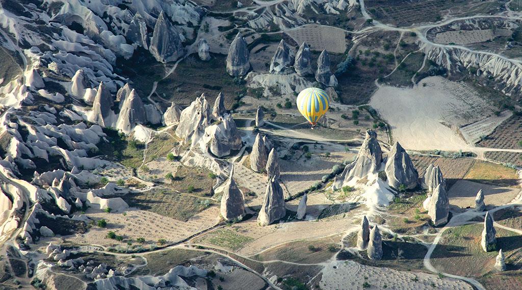 A solitary hot air balloon floats above Cappadocia in the Central Anatolia region of Turkey. Photo by Ognyan Stefanov, Sofia, Bulgaria.