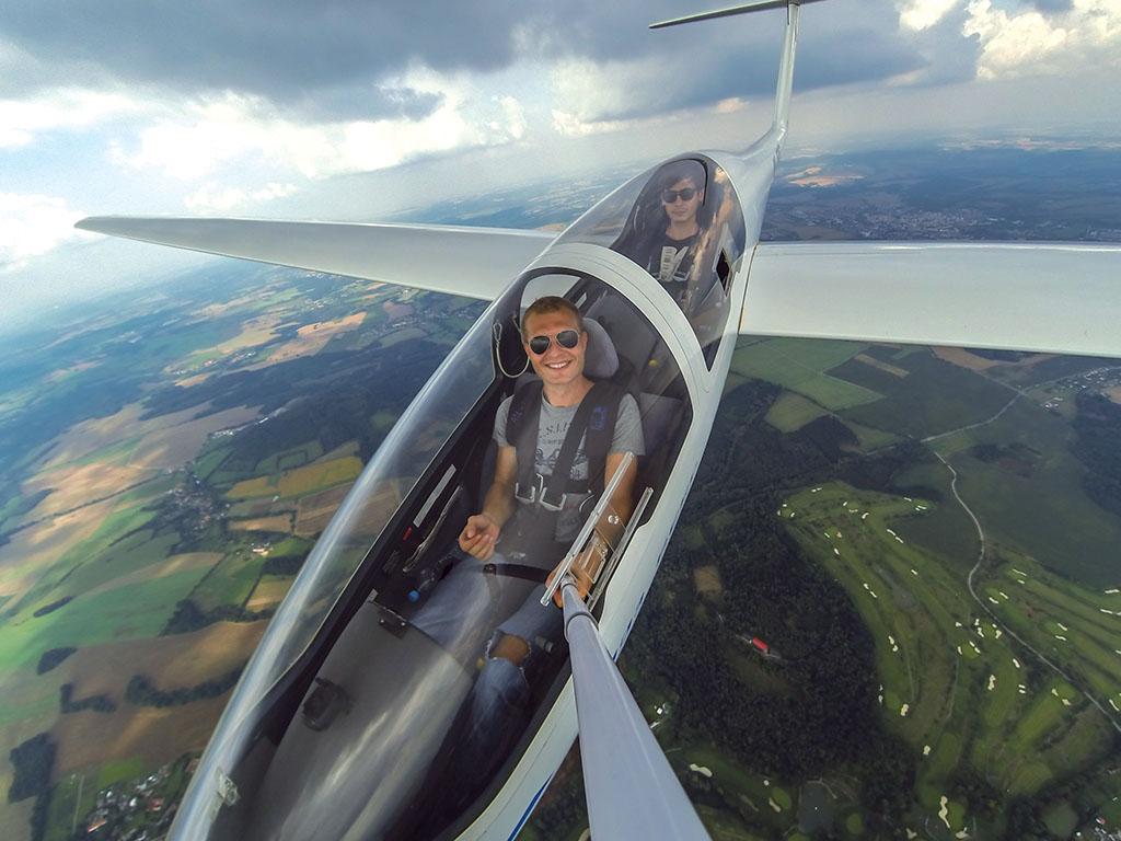 I took my friend gliding in a Grob G103A above Bensov, Czech Republic, last fall and took a selfie to commemorate his first “glide ride.” Photo by Jakub Vlk, Prague, Czech Republic.