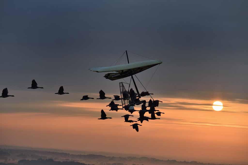 Romain Tourneux flying with geese, Put du Fou, France. By Alain Ernoult.
