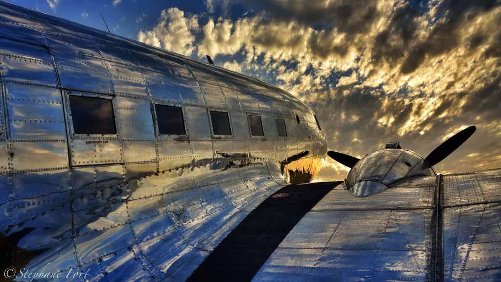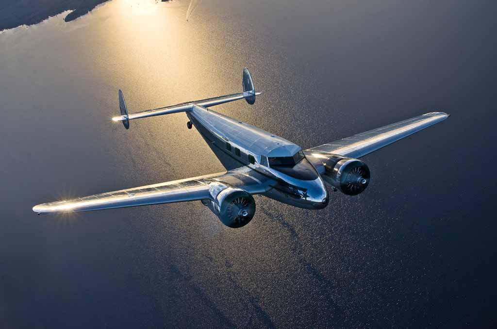 Lockheed Electra Junior enjoying the last of the evening's sunlight. By Ed Hicks.
