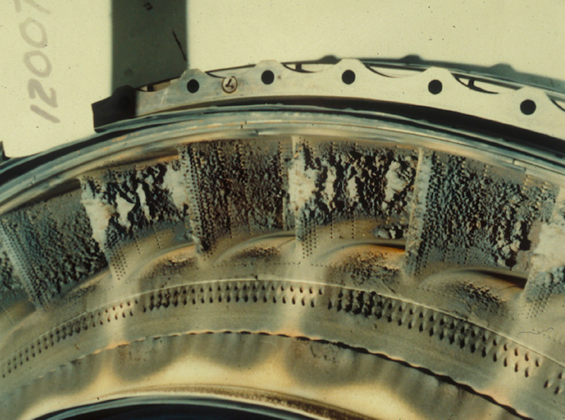 Flight operations near salt water or high pollution areas expose the turbine blades to a unique form of chemical attack called sulfidation. Every turbine engine uses fuel contaminated with sulfur, that when burned at high temperatures, emits varying amounts of sodium sulfate gas. This gas causes a corrosive deterioration of a turbine blade.