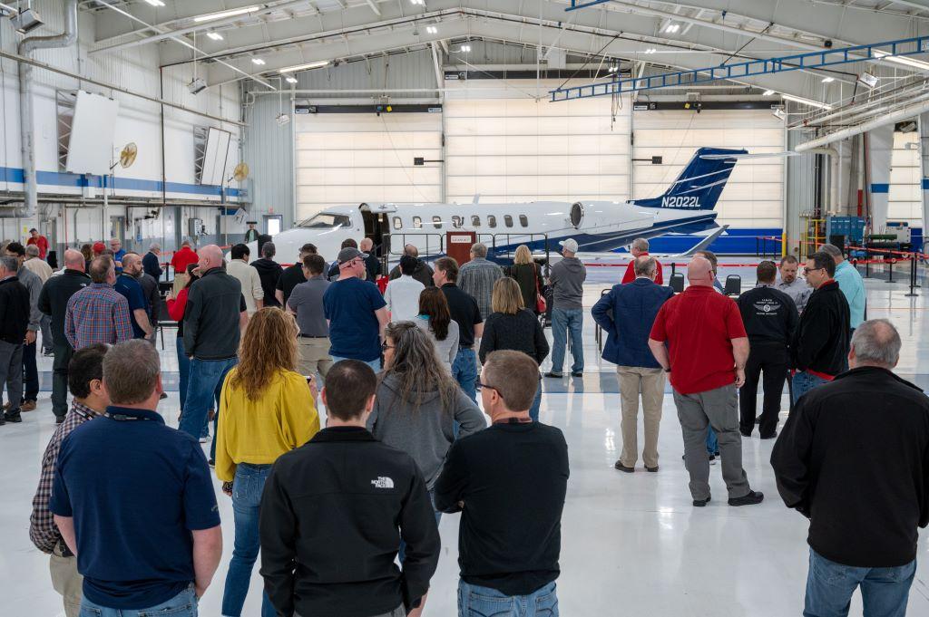 Businesses that own Learjets have been more successful because of them, Cox says, adding that millions have flown in them over the years. "Think about the fun trips that people have takin in the back of the airplanes that you've built," Cox told employees. Credit: Alex Unruh