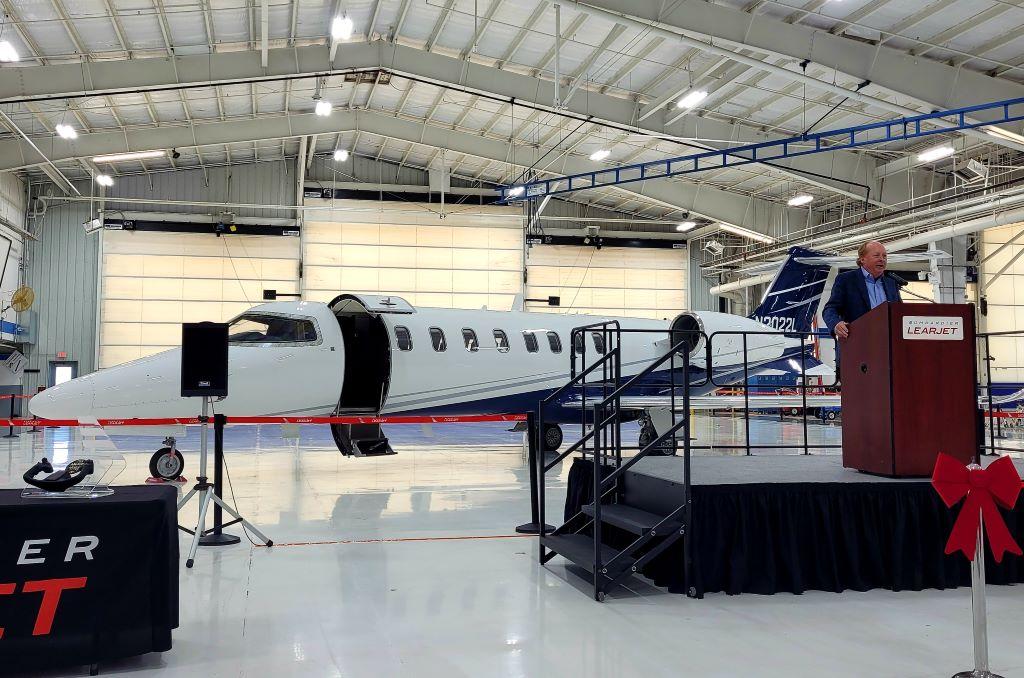 Charles (Chuck) Cox, CEO of Northern Jet Management based in Grand Rapids, Michigan, saw the Learjet 75 for the first time when he entered the hangar for the ceremony. “It’s beautiful, isn’t it?” Cox says. “It’s the absolute most beautiful one we’ve ever purchased.” Credit: Brett Schauff