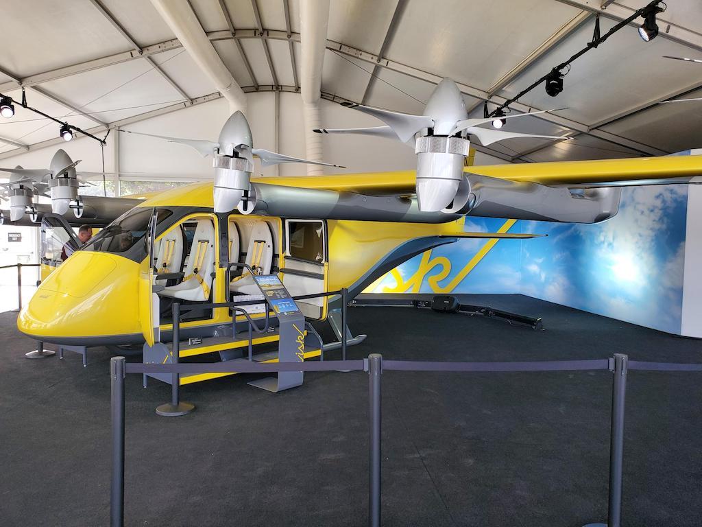 Boeing subsidiary Wisk Aero's Series Six four-person, autonomous air taxi is making its AirVenture debut. The aircraft has six forward and six after propellers. The aft propellers rotate for takeoff and landing but align and lock in position during cruise.