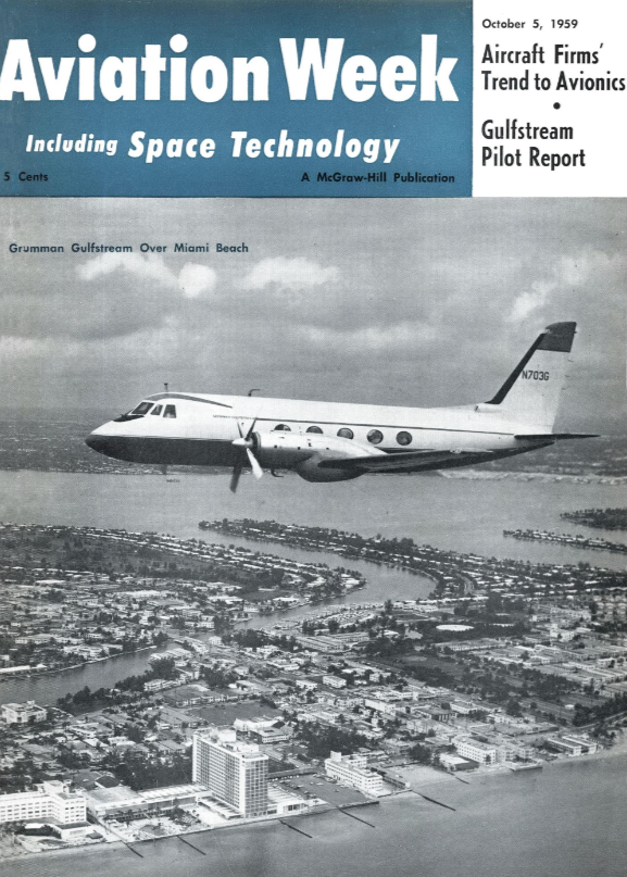 The issue dated Oct. 5, 1959, showcases a seven-page feature about how the Gulfstream handles in flight. See more images including the cabin interior, the flight deck and, learn more about the aircraft including its specifications and engine data.