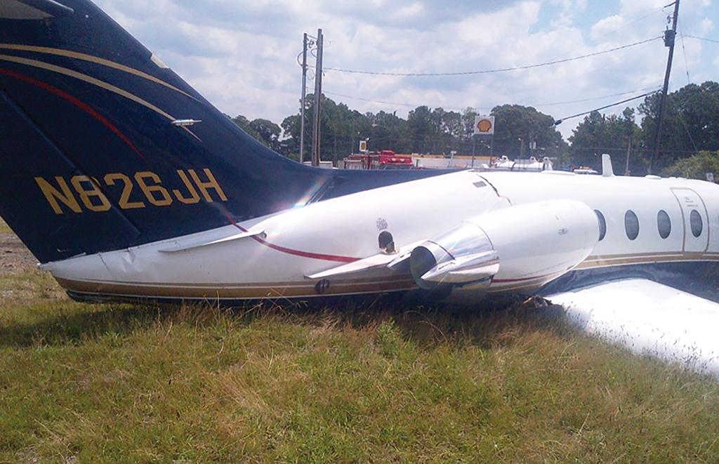 Two days later, upon touching down at 1006 at Atlanta’s DeKalb-Peachtree Airport (KPDK), the Beechjet overran the end of Runway 20L, crossed an airport service road, veered to the left and struck an airport perimeter fence before coming to a stop — upright, fortunately. The airplane was heavily damaged, both pilots were seriously injured, and the two passengers suffered injuries as well, but comparatively minor.