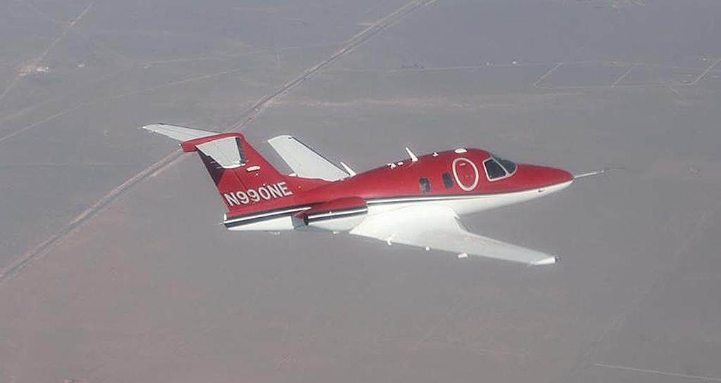 One Aviation flew a testbed for its Eclipse 700 light jet on Sept. 1, an Eclipse 500 modified with the larger wing planned for the new aircraft. In addition to a new wing with increased fuel capacity, the Eclipse 700 will have a 14-in. fuselage extension and Williams International FJ33-5A turbofans replacing the Eclipse 500’s Pratt & Whitney Canada PW610Fs. Certification is planned for 2019.