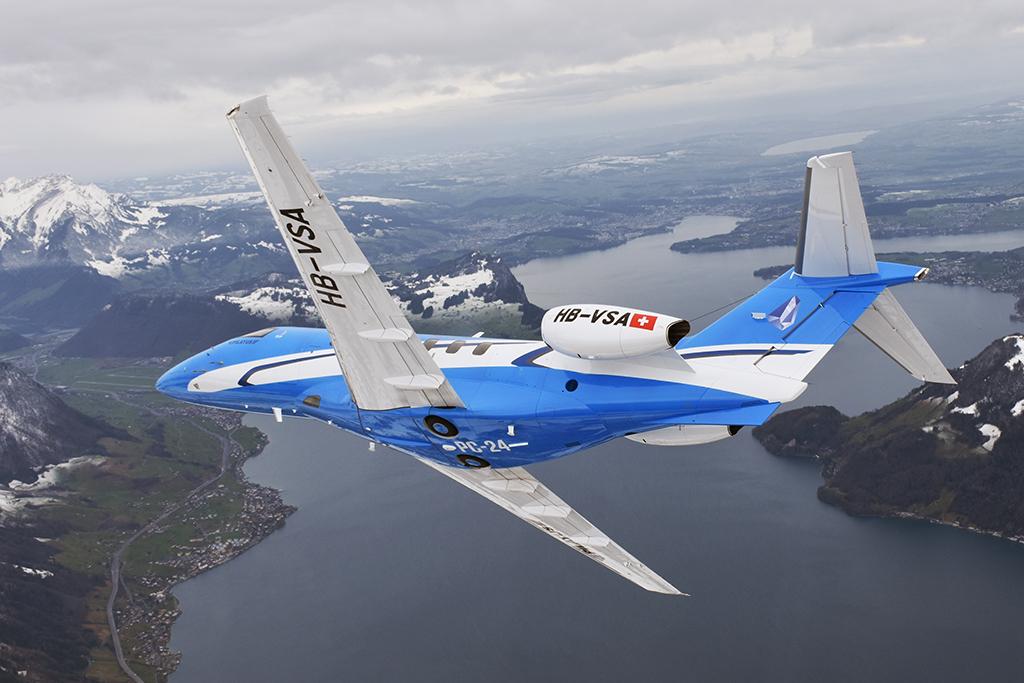 Pilatus Aircraft’s first business jet, the super-light PC-24, received European and U.S. certification in December 2017, with first delivery to U.S. fractional operator PlaneSense expected by year-end. Capable of operating from short and rough fields, the PC-24 is powered by Williams International FJ44-4A turbofans and has an integrated flight deck based on Honeywell Primus Apex avionics.