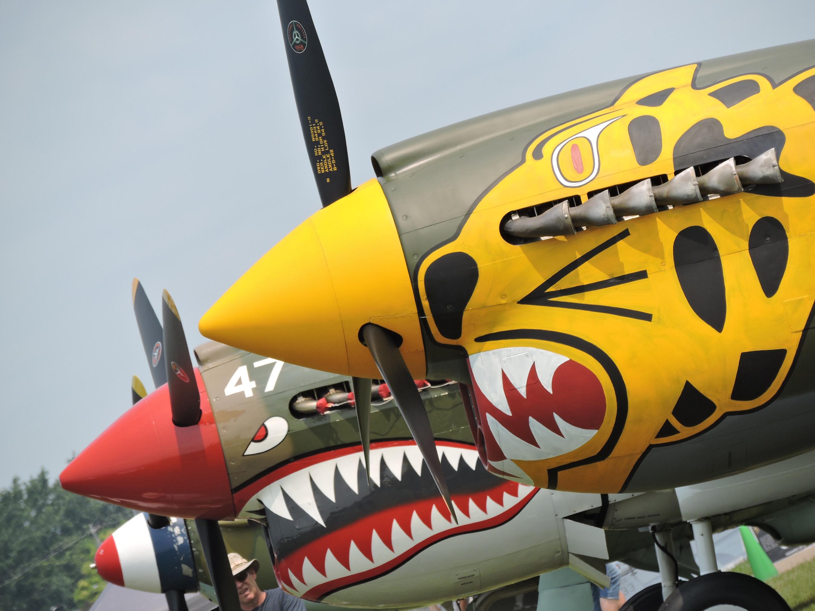 A pair of P-40s feature the shark/tiger mouths that suit them so well.