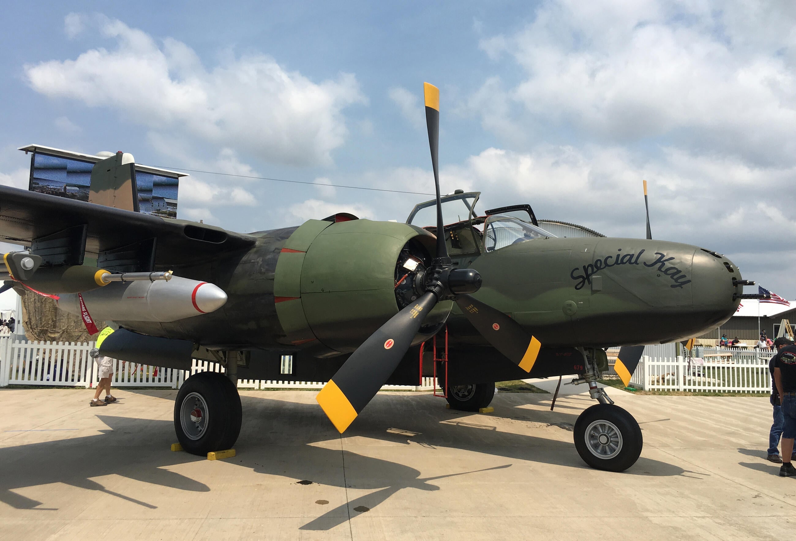 The Douglas A-26K Counter Invader "Special Kay" is believed to be the only one of its type flying today. Originally a B-26, it was one of 40 converted by the On Mark Engineering Co. in Van Nuys, California, into one of the most deadly fighting machines of the Laotian portion of the Vietnam War. Upon arriving in Thailand as a B-26K, the "B" designation for "bomber" upset that country’s authorities, so the aircraft were redesignated "A" for "attack."