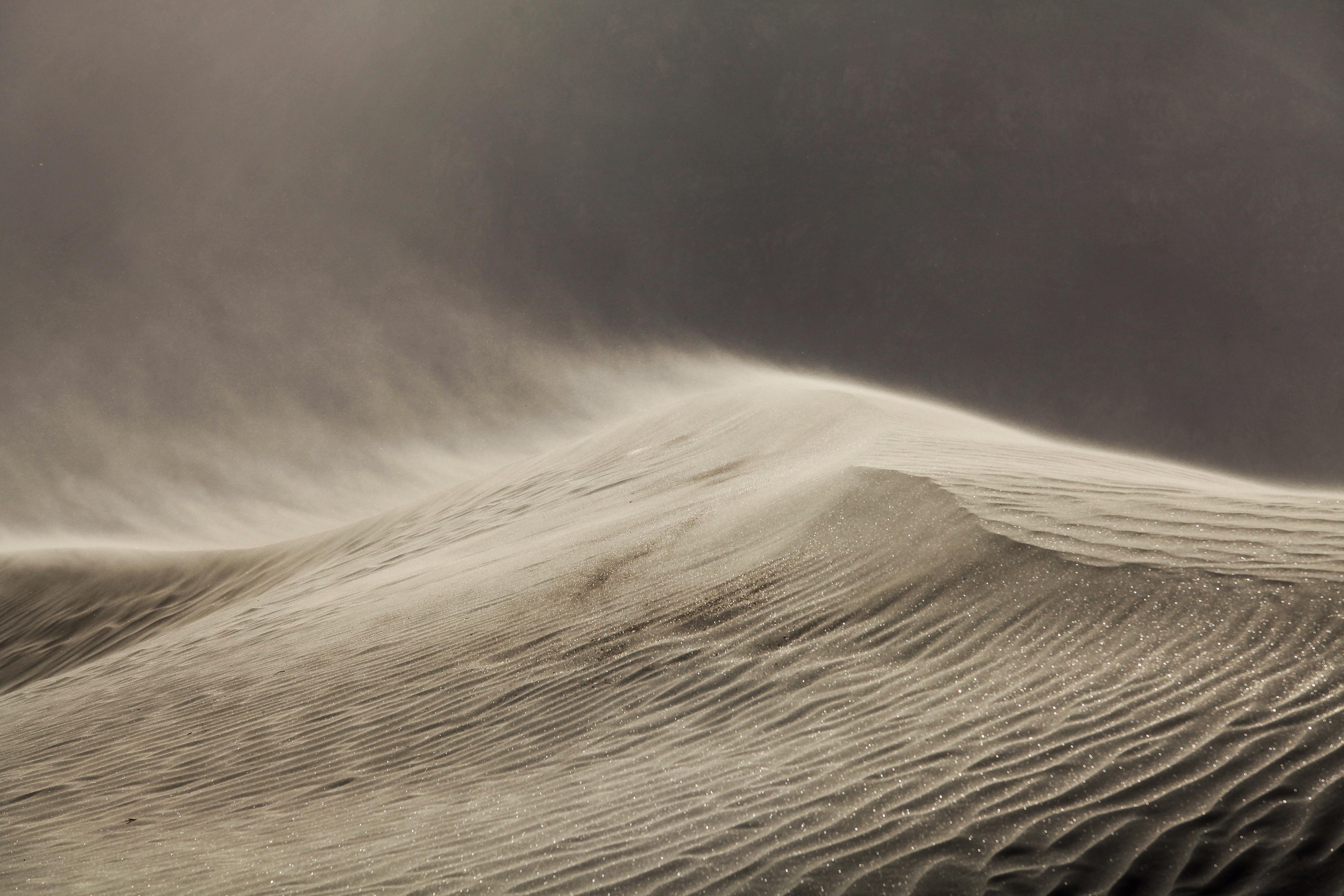 The aircraft began its descent and entered blowing sand with forward visibility reducing rapidly. The commander described the effect of the sand as like watching iron filings flying past the windscreen. The aircraft continued its descent. The copilot stated that the altitude check at 4 DME revealed the aircraft was about 200 ft. above the published descent profile. The commander stated that as the aircraft approached 3 DME it became apparent that it was not closing with the vertical profile, so he increased the rate of descent to about 2,000 fpm.
