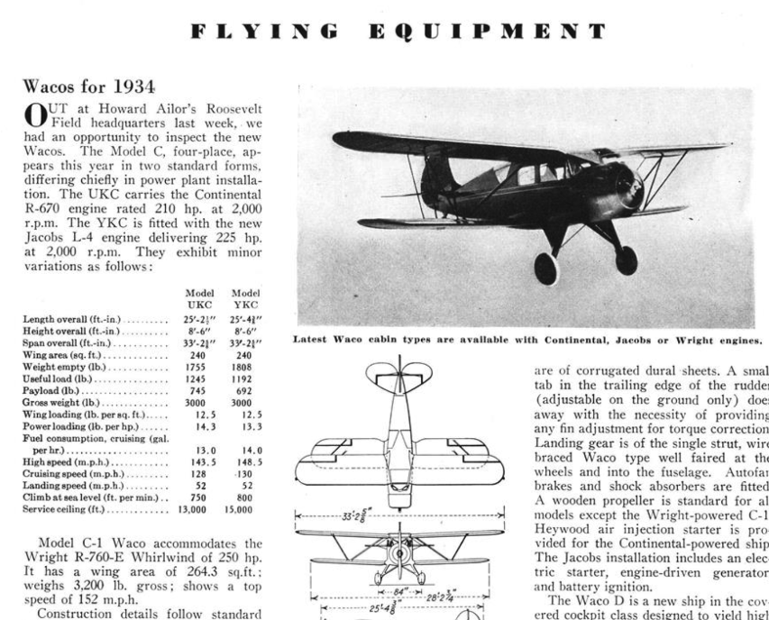 In this issue of the then monthly magazine titled Aviation, the section Flying Equipment, showcased two aircraft, the Wacos and the Kinner.