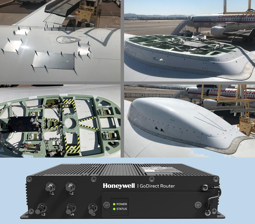 September 2020 installation of a Honeywell JetWave Ka-band antenna system on the company’s Embraer E170 jet. JetWave provides wifi connectivity via Inmarsat’s Jet ConneX satellite network: “fast, reliable and available anytime, anywhere and at any altitude,” Honeywell says. The company’s GoDirect router works with other providers’ antennas as well.