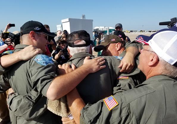 B-29 Superfortress Doc’s crew members congratulate Tony Mazzolini