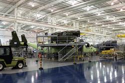 The fourth MV-22 to be assigned to the Presidential Support Squadron awaits attachment of the tail empennage (painted the iconic dark green of the squadron) on the Bell V-22 assembly plant production floor in Amarillo, Texas, Dec. 1. The first MV-22 is on schedule to be delivered to Marine...