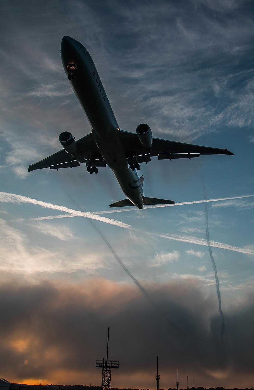 A Delta Air Lines 767-400 breaking through low clouds on her morning arrival on Runway 26R at Hartsfield-Jackson Atlanta International Airport.