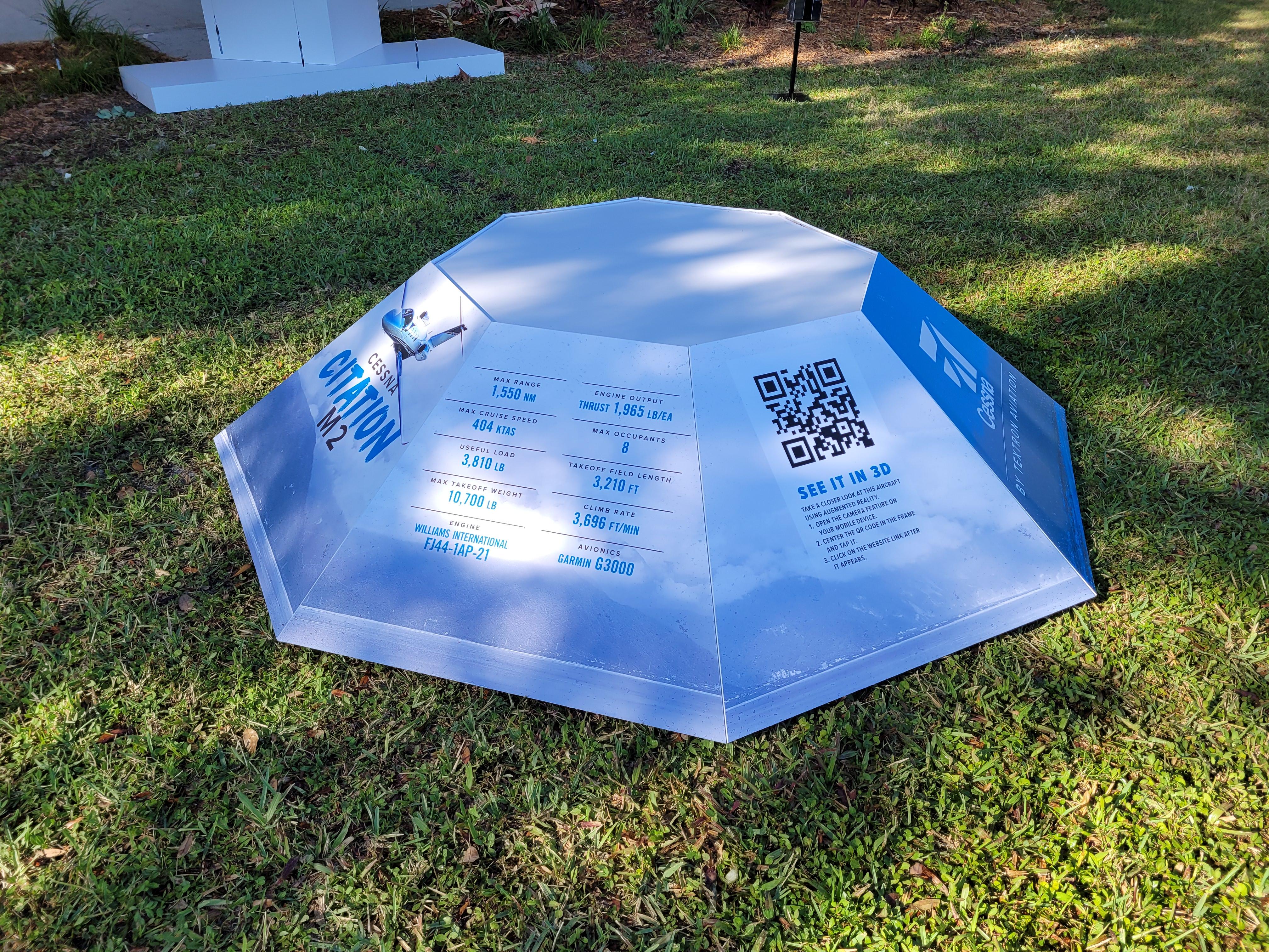 Textron Aviation’s virtual aircraft displays include the ability to conduct a virtual tour of an aircraft, such as the Citation M2, by scanning QR codes with a smart phone. The technology will reach beyond Sun ‘n Fun, Chris Crow said. While it is planning to have a more traditional presence at AirVenture Oshkosh in July with a manned booth, the company plans to bring with it some of the virtual platforms for customer interactions. “Almost everyone has a smart phone, and they’re on it every day,” Crow said. “They’re very comfortable with this kind of platform.” Credit: Molly McMillin