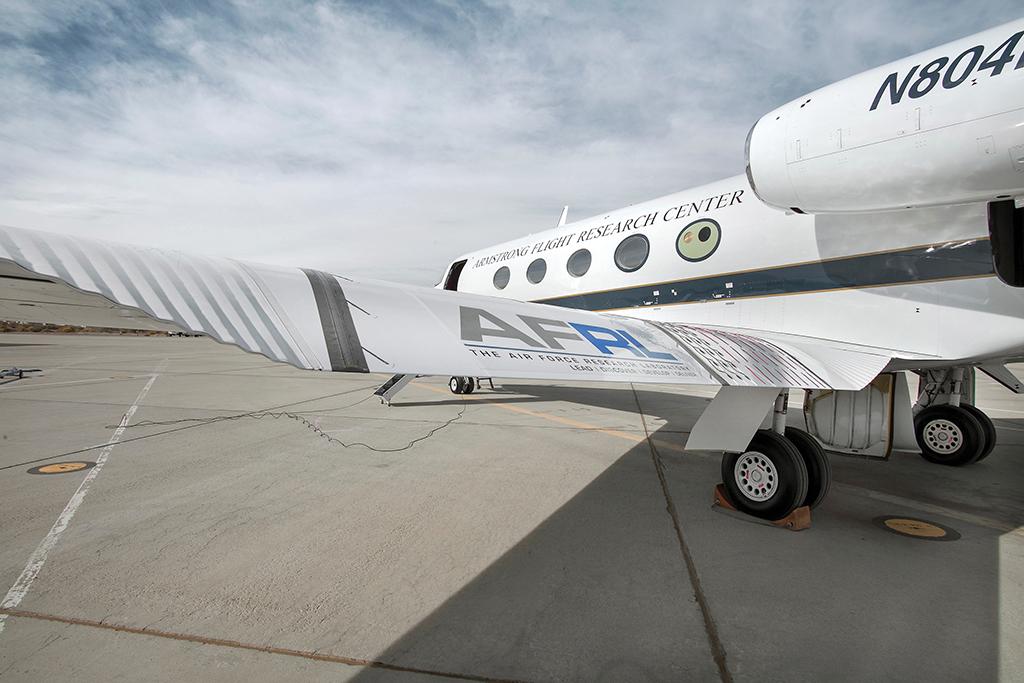 Could flexible flaps that reduce noise and drag by deforming seamlessly become as ubiquitous as winglets, on new aircraft and as retrofits? Designed by FlexSys, the seamless bendable and twistable surfaces are being flight tested by NASA on a modified Gulfstream III business jet under the Adaptive Compliant Training Edge project with the Air Force Research Laboratory. A compliant lattice structure smoothly changes the flap’s camber when actuated. Flexible transition surfaces join the flap to the wing. Cruise drag is expected to be cut by up to 3%. For clean-sheet designs, fuel savings could be 12%. Credit: NASA