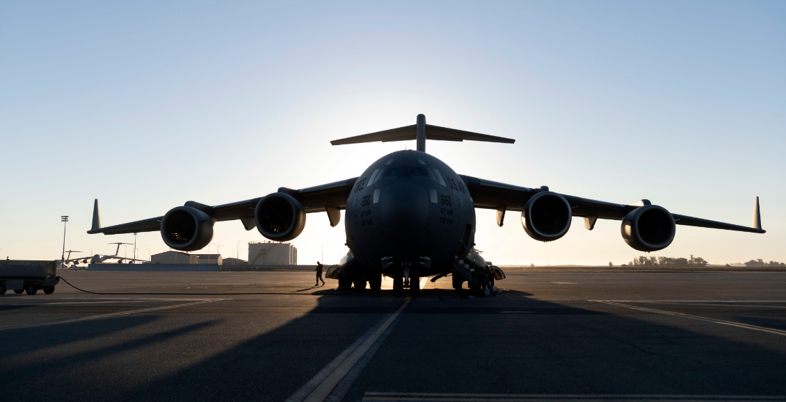 A C-17 on the flight line at Travis Air Force Base, California, on Sept. 23.