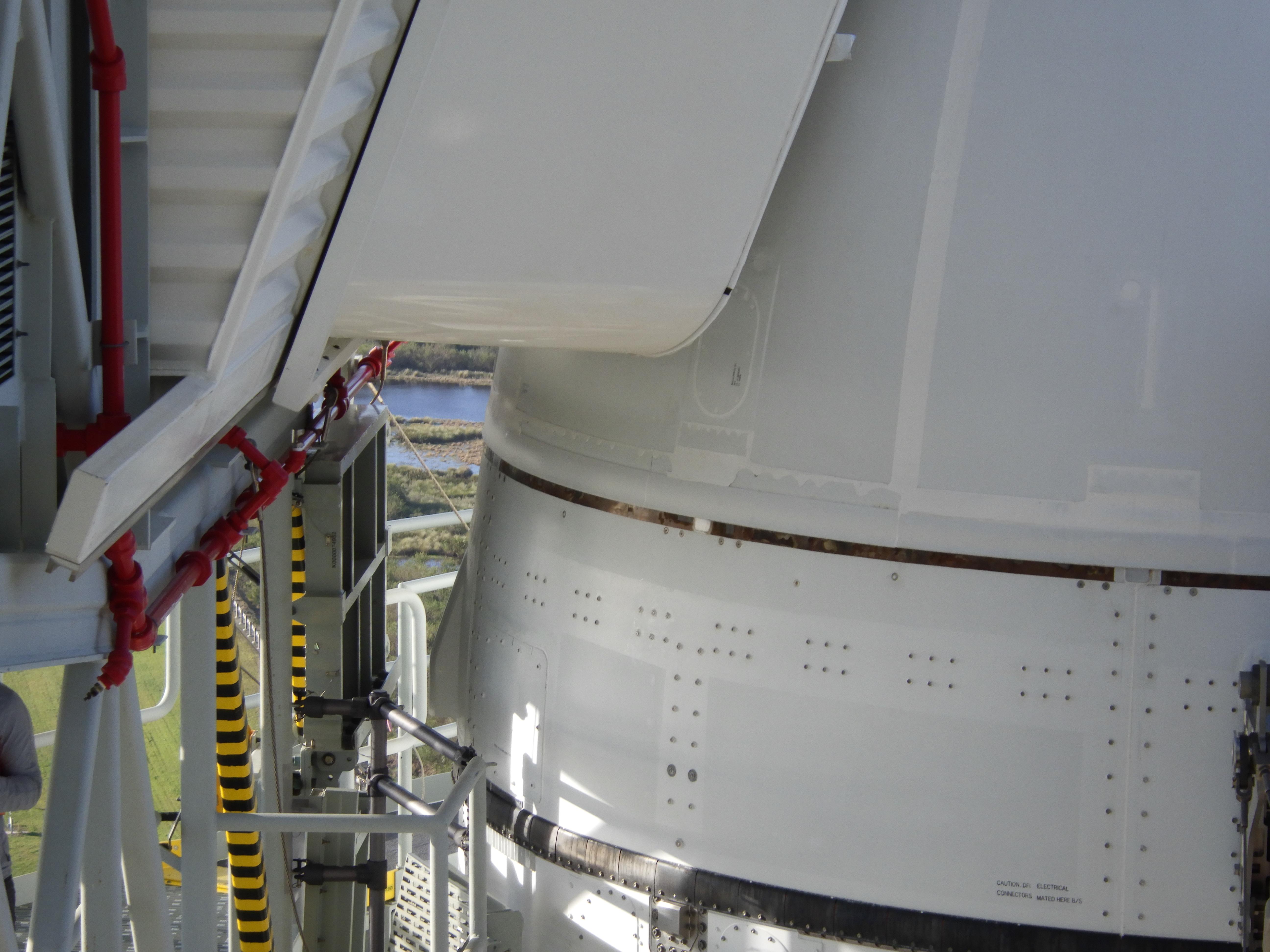 Caulk on a seam between the Orion launch abort system and crew module adapter detached during Hurricane Nicole.