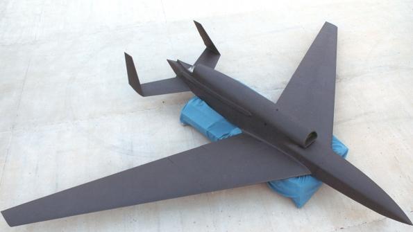 Miller's story hinted at how big the project had been. This was no once-over-Hanoi lashup but a very serious effort to probe China's biggest defense secrets. The Model 154 was designed to fly higher than any subsonic aircraft, reaching over 80,000 feet on the power of a specially developed engine, the General Electric J97. A few years before anyone talked about stealth, its radar cross-section (RCS) was the lowest of any aircraft ever flown, thanks to shaping and specially developed radar-absorbent materials and structures. It also had an automatic electronic jamming system. Update: From the collection of the San Diego Air & Space Musem, this is the 67% scale RCS model, showing nose, tail and wingtip radomes and RAM/RAS insets on wings and tail: