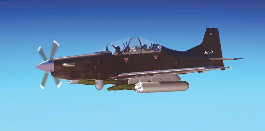 UAE-based construction company Calidus commissioned Brazil’s Novaer to develop the B-250 all-composite light-attack/trainer aircraft for manufacture in Abu Dhabi. The prototype flew in Brazil in July 2017. The B-250 was designed by Joseph Kovacs, who also designed the Embraer Tucano. The B-250 is slightly larger than the Super Tucano. The aircraft has an EO/IR sensor and Rockwell Collins Pro Line