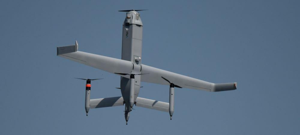 AV’s Wildcat has tail-mounted lift propellers for vertical flight and a nose-mounted prop for wing-borne cruise.