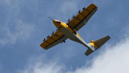 The hybrid-electric, STOL aircraft demonstrated its lower acoustic signature and potential transport uses in distributed military operations during an event.