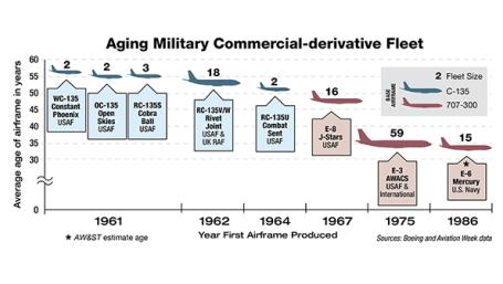 Boeing’s common-platform concept offers the U.S. Air Force variants of the twinjet family, including the newly developed MAX, to succeed all the aging military quad-jet fleets in line for eventual refinancing strategies.