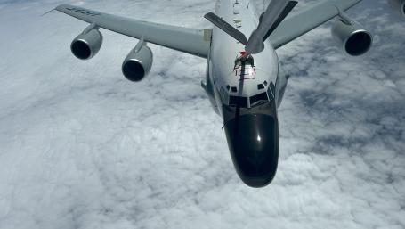 The Metrea Strategic Mobility-owned tanker offloaded nearly 90,000 lb. of fuel during 13 boom contacts with an RC-135 and E-3 during Exercise Resolute Hunter.