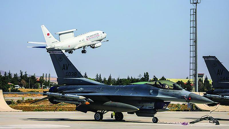 Turkey has been buying aircraft, such as the Boeing E-7A (in flight), to help build up domestic defense industrial capacities.