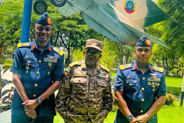 Nigerian and Ethiopian air force personnel pose after holding discussions on collaboration.