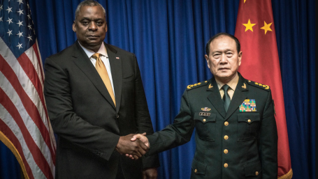 U.S. Defense Secretary Lloyd Austin met with China’s defense minister on Nov. 22, pressing China to cut back on increasingly dangerous behavior by Chinese aircraft, though the Pentagon declined to provide any specifics about the incidents.