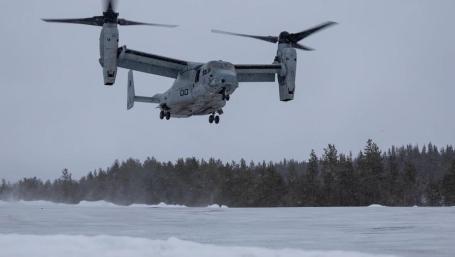 The debris of a U.S. Marine Corps MV-22 Osprey that crashed was spotted late March 18 by a Norwegian rescue team south of the northern city of Bodo.