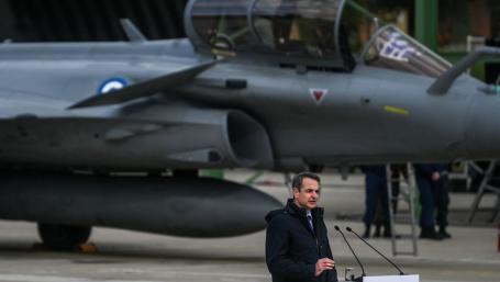 The first six of a planned 18 Rafales overflew the Acropolis in Athens before touching down at the nearby Tanagra Air Base.