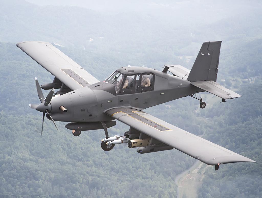 Touted as a low-cost alternative to expensive unmanned aircraft for surveillance and strike, Air Tractor’s AT-802U is a rugged agricultural turboprop that has been turned into a two-seat light-attack aircraft that can carry a payload up to 8,000 lb. and fly for up to 10 hr. The UAE Special Operations Command flies armed AT-802s.
