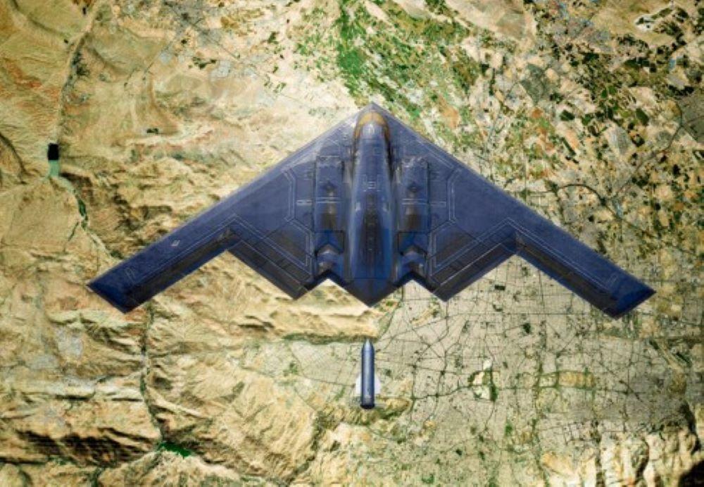 A B-2 drops a GBU-57 MOP.
