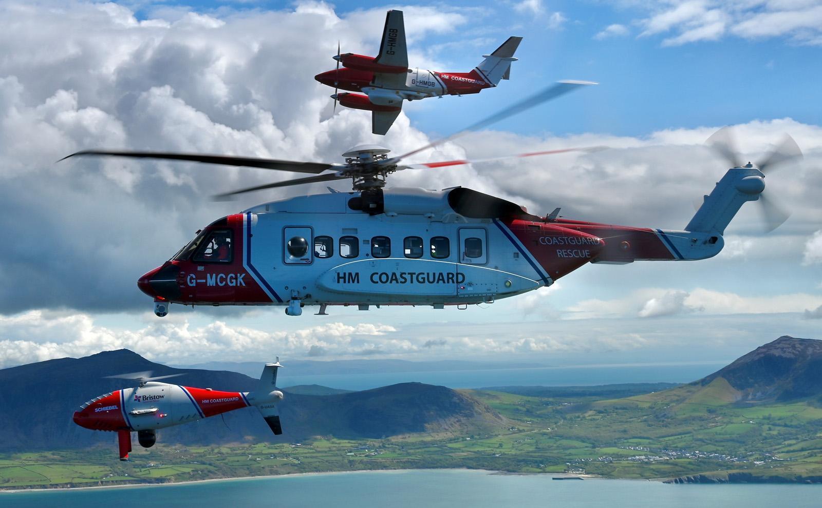 Bristow Helicopters, the provider of the UK’s Search and Rescue (SAR) helicopter service, is set to operate a rotary-wing unmanned aircraft system for SAR duties this summer. Credit: Ian Black, HM Coastguard, Bristow Helicopters, 2Excel Aviation