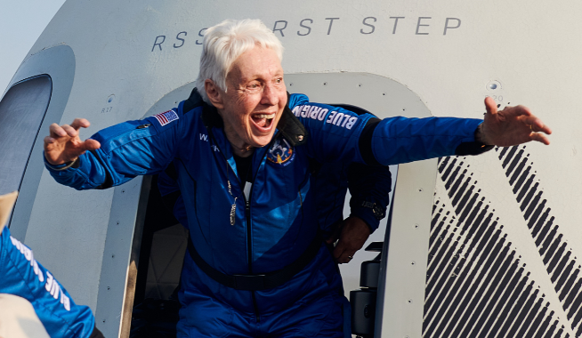 The same day Blue Origin made its first human spaceflight, sending four passengers into suborbital space, the FAA issued new Commercial Space Astronaut Wings eligibility requirements. Among the passengers aboard Blue Origin’s New Shepard was pioneering aviator Mary Wallace “Wally” Funk, who cast her eye on spaceflight more than 60 years ago. At 22, Funk was among a group of female pilots who participated in rigorous medical evaluations as part of a study to determine if women could physically and mentally fly in space. Credit: Blue Origin